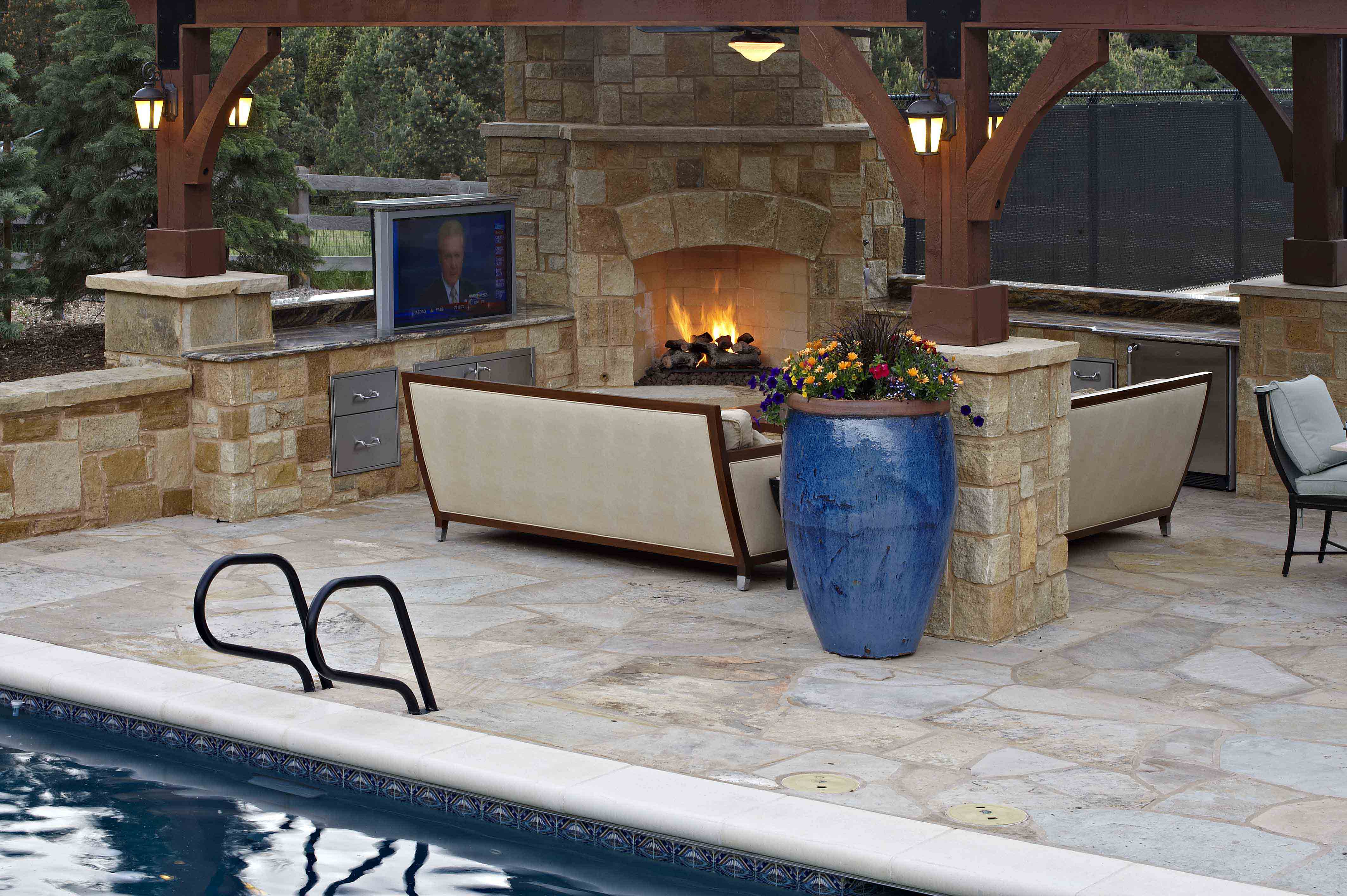 When it comes to integrating your technology outside, it has to be done skillfully and in complement of your outdoor environment. It does not look flattering to have your large flat screen TV mounted awkwardly out of place among your naturalistic rock garden with waterfalls. Your outdoor rooms and areas should be consistent in style and design. Various wires running across the ground is unsightly and extremely dangerous. You want your technology like stereo systems, TV/Audio, security cameras and etc all to be cleverly integrated into the overall design so that it enhances the aesthetic of the space.